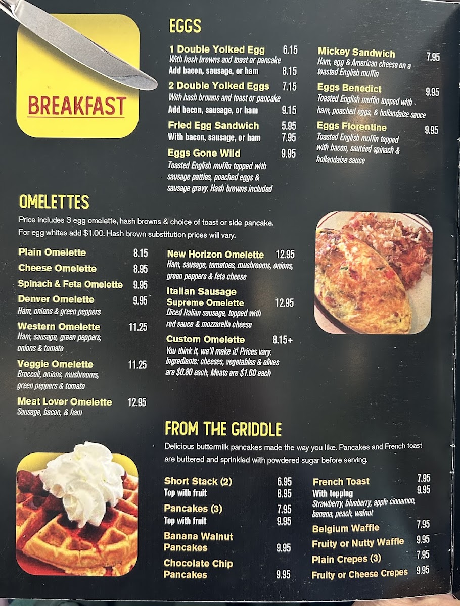 The moment you step into New Horizon, you'll feel right at home with a menu that’s as comforting as it is flavorful. The New Horizon Restaurant Menu offers a delightful mix of classic dishes and fresh twists on traditional favorites, all served with a touch of warmth and care. From hearty breakfasts that kickstart your day to satisfying dinners that bring everyone together, there’s something for every craving. Whether you're in the mood for a savory omelet, a fresh salad, or a mouthwatering steak, each dish is crafted with quality ingredients that will make every bite memorable. The menu caters to all tastes and dietary preferences, making it easy for you to find something that hits the spot. So, whether you’re grabbing a quick bite or enjoying a leisurely meal with family and friends, New Horizon promises a delicious experience every time.